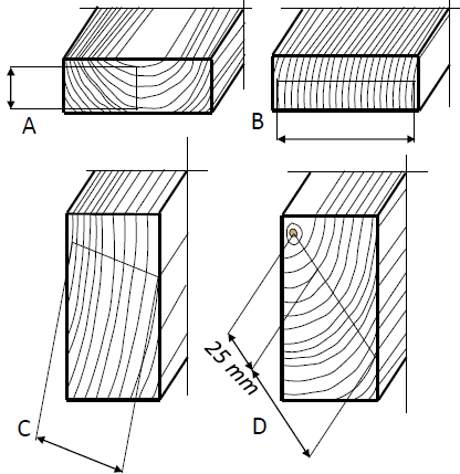 Se mide la anchura del anillo de crecimiento. Para ello se mide la anchura de la viga y se divide entre el número de anillos.