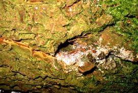 | Bolsa de resina y nudo sano | Bolsa de resina en la corteza del árbol |