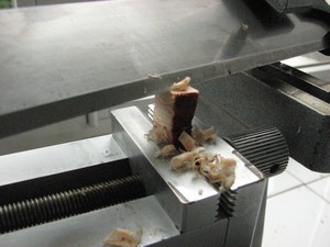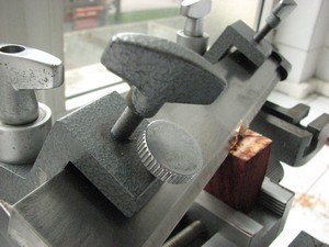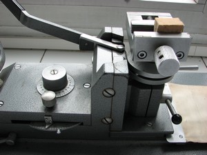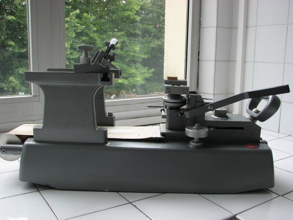 Se monta la cuchilla en el portacuchillas eligiendo los ángulos de ataque idóneos en función de la calidad y dureza de la muestra.