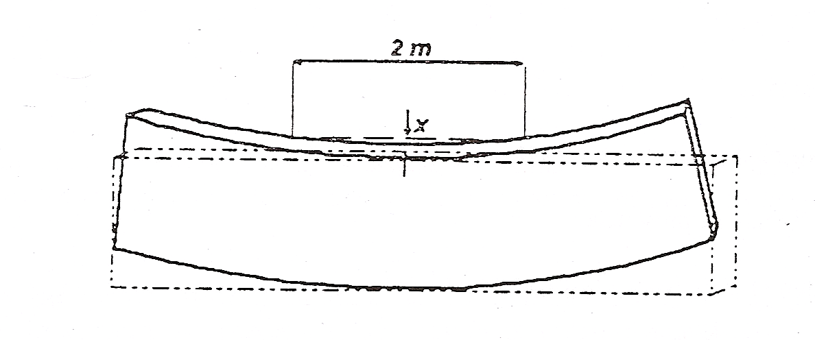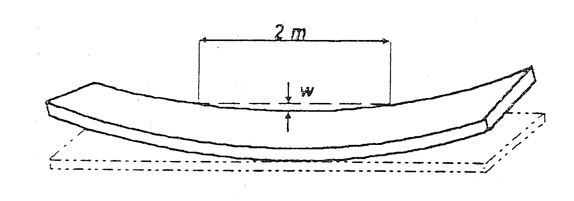 Se medirá siempre sobre dos metro de longitud, utilizando una regla rígida de dos metros, aplicada contra la pieza simétricamente respecto a punto de mayor formación, estimado visualmente. Expresar el resultado en milímetros por cada dos metros (véase dimensión x en la figura 14, y dimensión w en la figura 15).