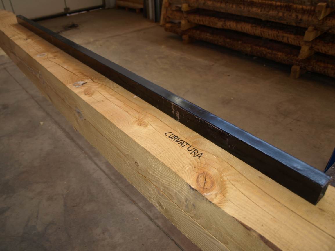 Foto 6: Ejemplo de medición de la curvatura en canto, haciendo uso de una barra metálica rígida de 2 metros de longitud.