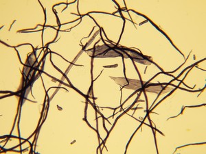 Algunas fibras con extremos con engrosamientos en forma de sierra