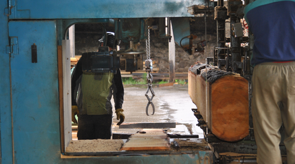 Se procede al aserrado quitando la parte más ancha del tronco que suele ir destinada a leña. Realizada la primera pasada, el conductor realiza otras pasadas para obtener tabla hasta la cota precisa en la que puede sacar una viga con la calidad deseada.