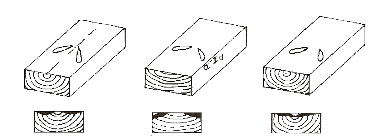 Figura 4: Nudos de cara interna, solo en el caso de la figura del centro se mide el nudo y no en la cara sino en el canto.