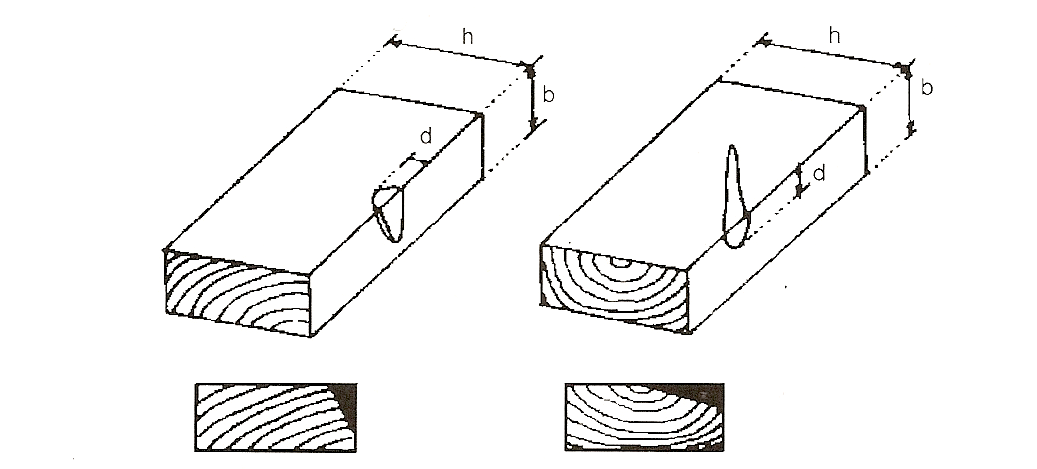 Los nudos superficiales de la cara interna (cara que se encuentre más cerca de la médula) se despreciarán, teniéndolos en cuenta exclusivamente si aparecen en la arista o en el canto (ver figura 4).