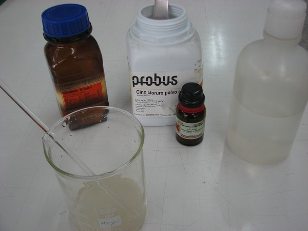 Se prepara añadiendo cloruro de cinc (Zn Cl2) a unos 100 ml. de agua destilada, hasta que quede un residuo insoluble.