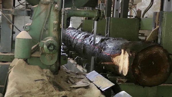 Sobre cada troza obtiene una cara o plano de referencia que se tomará como base para los cortes de las siguientes máquinas.