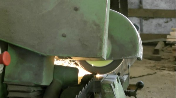 • Sierra. Ya sea circular o de banda, realiza el corte. En la sierra circular el elemento cortante es un disco dentado movido por un motor. Dado que la anchura que el disco debe tener para asegurar la suficiente resistencia mecánica está condicionada por su diámetro, para reducir mermas, en ocasiones se opta por dos discos de mitad del diámetro superpuestos y que cortan respectivamente la parte inferior y superior de la misma troza.