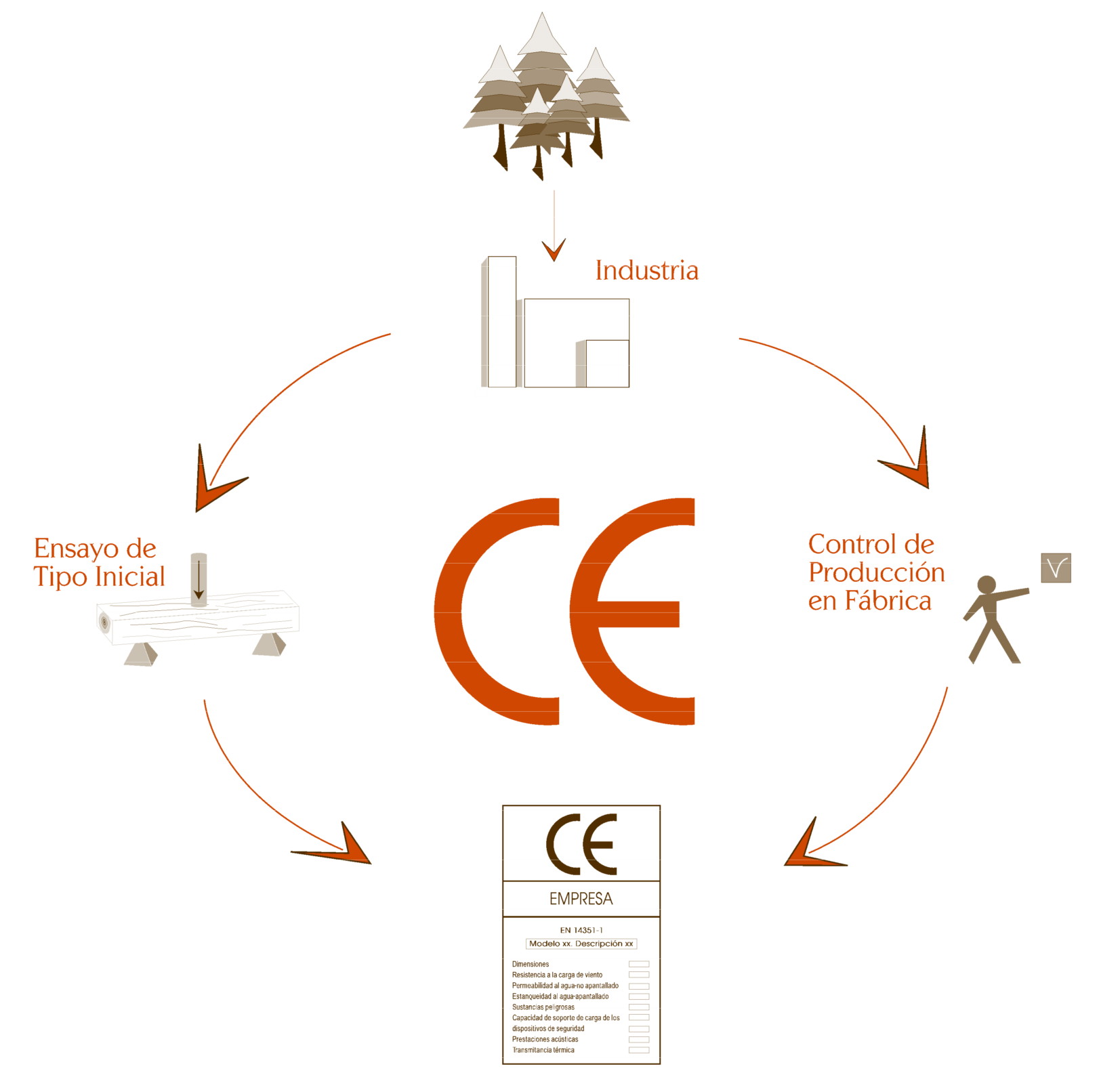 De la asignación de tareas establecidas por los sistemas Evaluación de la Conformidad se puede concretar que como mínimo las empresas afectadas por el marcado CE tienen como obligación la realización de los Ensayos de Tipo Inicial (ETI) y la implantación de un Control de Producción en Fábrica (CPF).